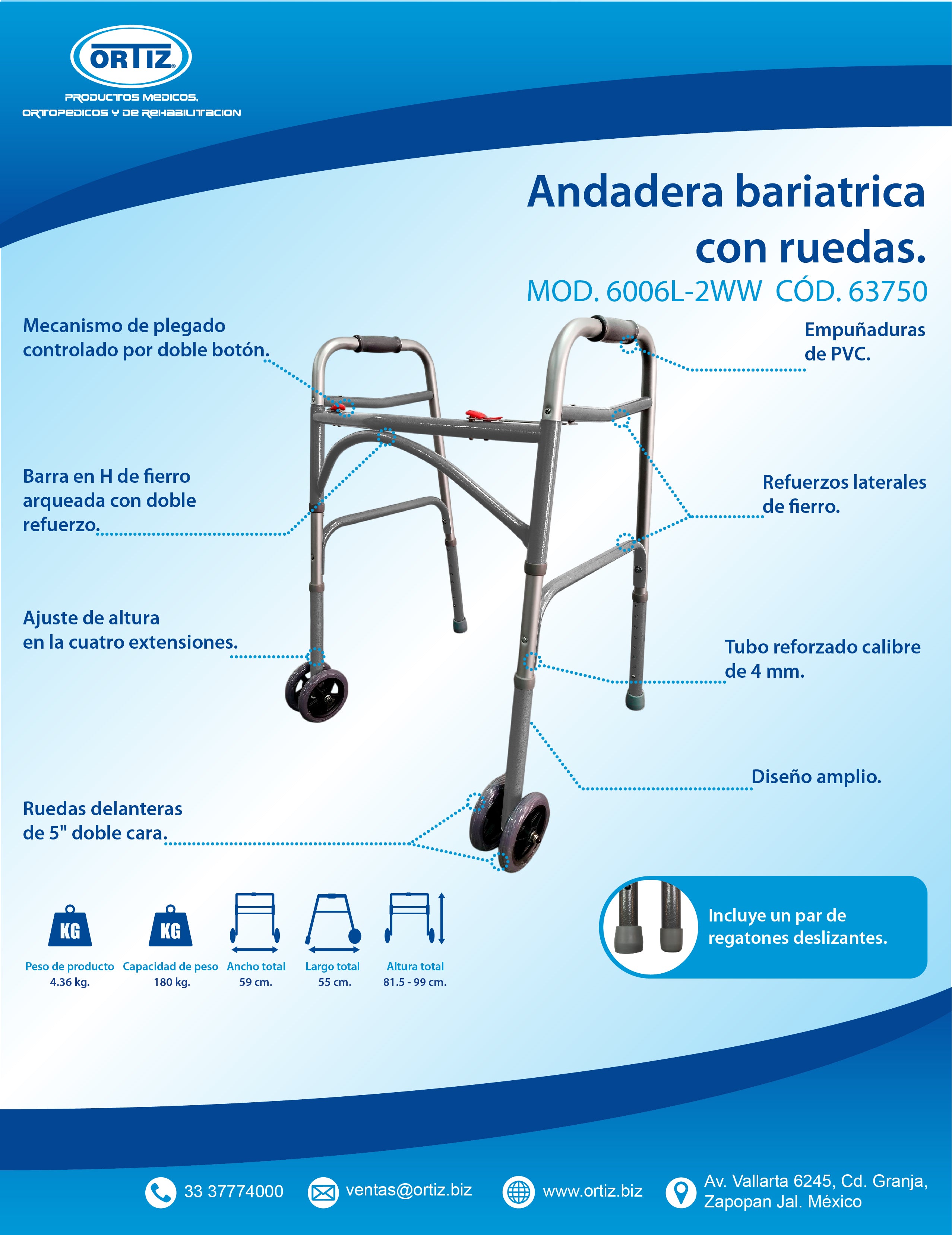 Diseñada para ofrecer mayor estabilidad, resistencia y comodidad, esta andadera bariátrica es una excelente opción para brindar apoyo seguro durante la movilidad diaria.