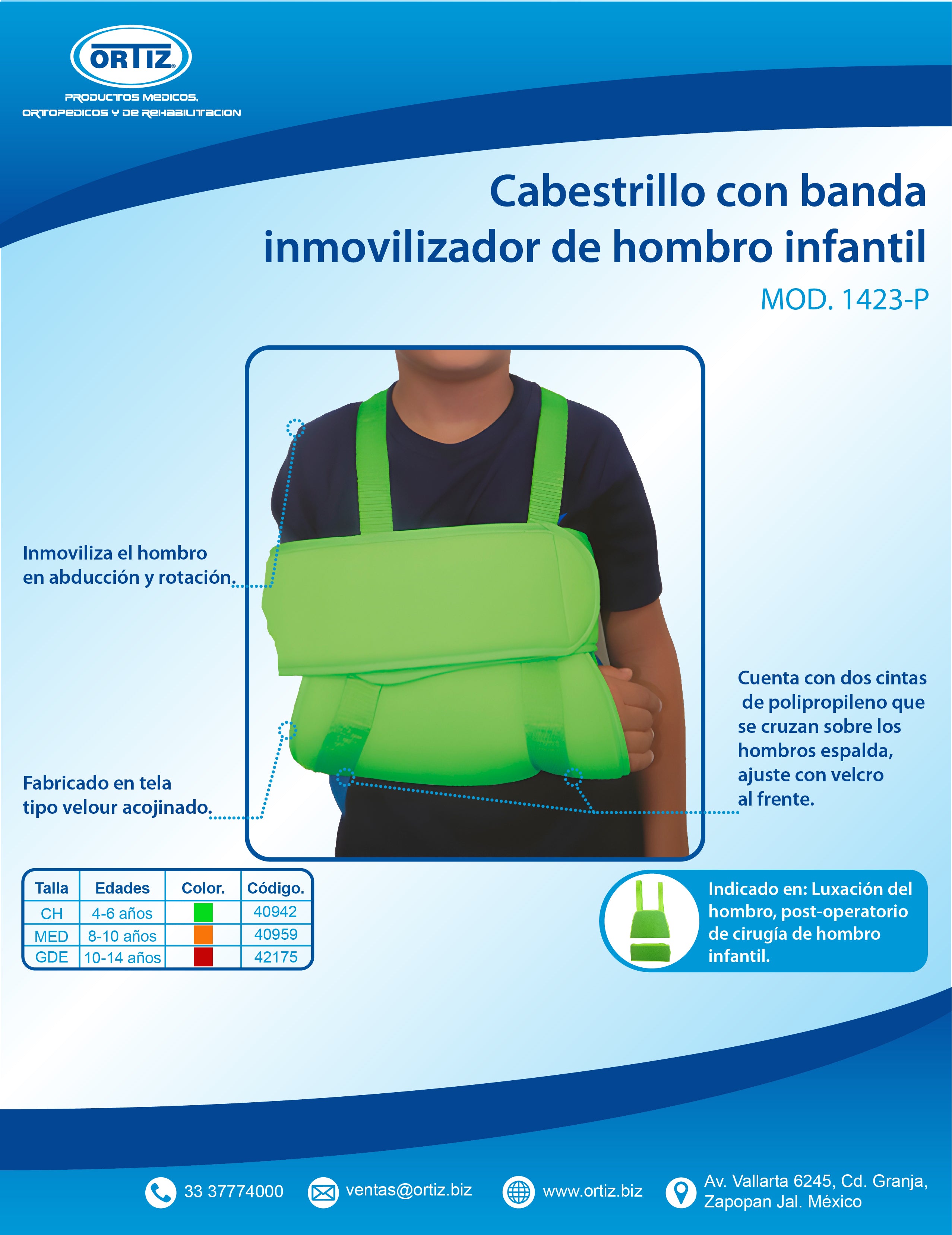 El Cabestrillo con Banda Inmovilizador de Hombro Infantil de la marca Ortiz, modelo 1423P, es el accesorio perfecto para brindar comodidad y soporte a los más pequeños. Fabricado con materiales de alta calidad, garantiza una inmovilización segura y efectiva del hombro en caso de lesiones o dolores. Su diseño ajustable permite adaptarlo fácilmente a la medida del niño, brindando un ajuste personalizado y cómodo. Además, su suave acolchado evita roces o irritaciones en la piel, asegurando una experiencia agradable durante su uso. Ideal para mantener el hombro en una posición adecuada para una pronta recuperación, este cabestrillo es una herramienta indispensable en el cuidado de la salud de los más pequeños. No dudes en adquirirlo para brindar el soporte necesario a tus hijos en caso de necesidad.