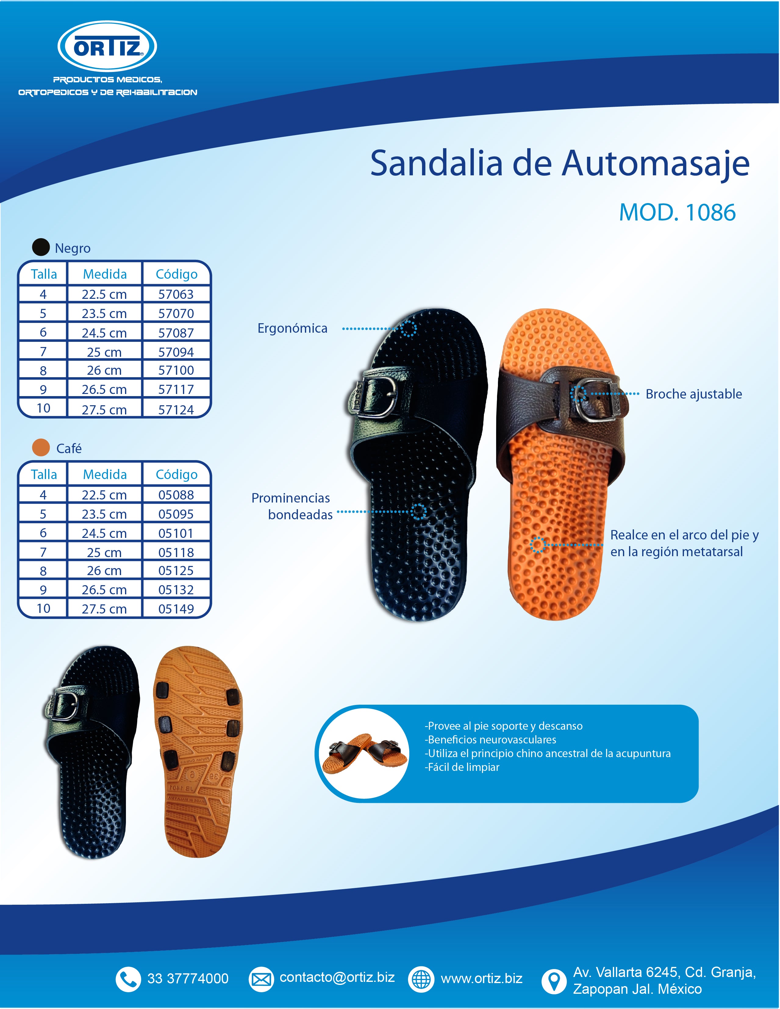 Descubre la Sandalia De Masaje Acupuntura Ortiz, ideal para adultos que buscan comodidad y bienestar en cada paso. Fabricada con materiales de alta calidad como el PVC, esta sandalia estilo slides brinda un ajuste perfecto y una sensación de masaje en cada paso. El modelo 1086 de la marca Ortiz es versátil y sin género, perfecto para usar en cualquier ocasión. La suela de PVC proporciona una excelente tracción y durabilidad, garantizando un calzado resistente y cómodo para usar a diario. Con un diseño moderno y funcional, esta sandalia de masaje acupuntura es una excelente opción para quienes buscan un calzado que cuide de sus pies y les brinde un extra de relajación. Atrévete a probar la experiencia de caminar con el confort y el estilo que solo la Sandalia De Masaje Acupuntura Ortiz puede ofrecerte.