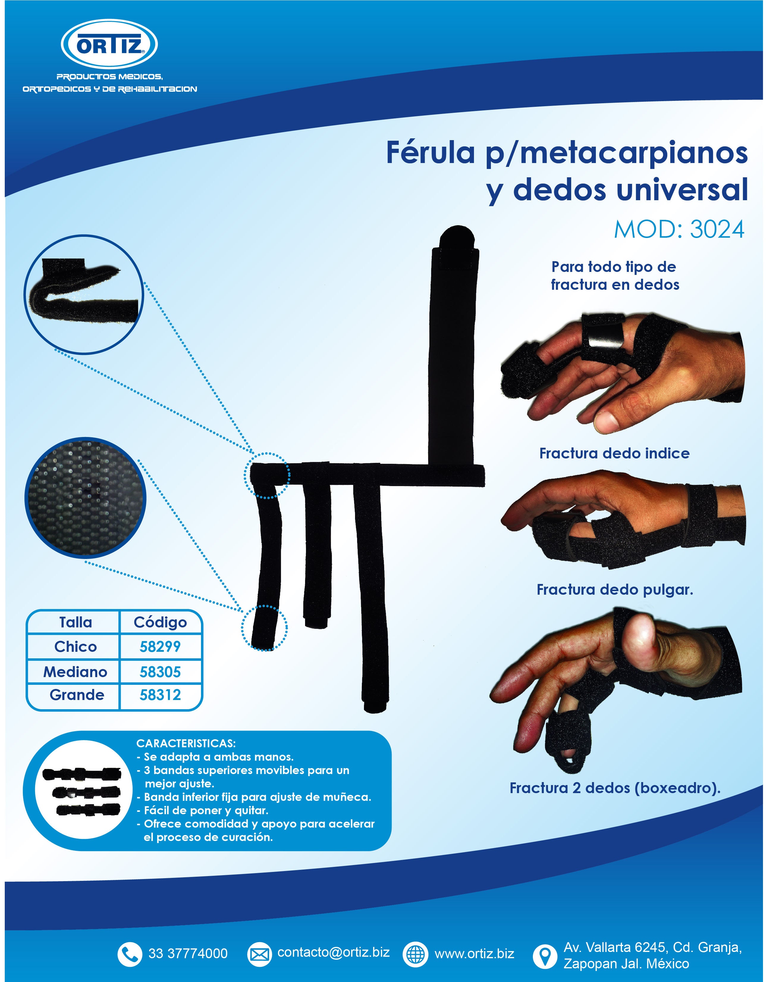 Férula universal inmovilizadora de mano para metacarpianos y dedos. MOD.3024