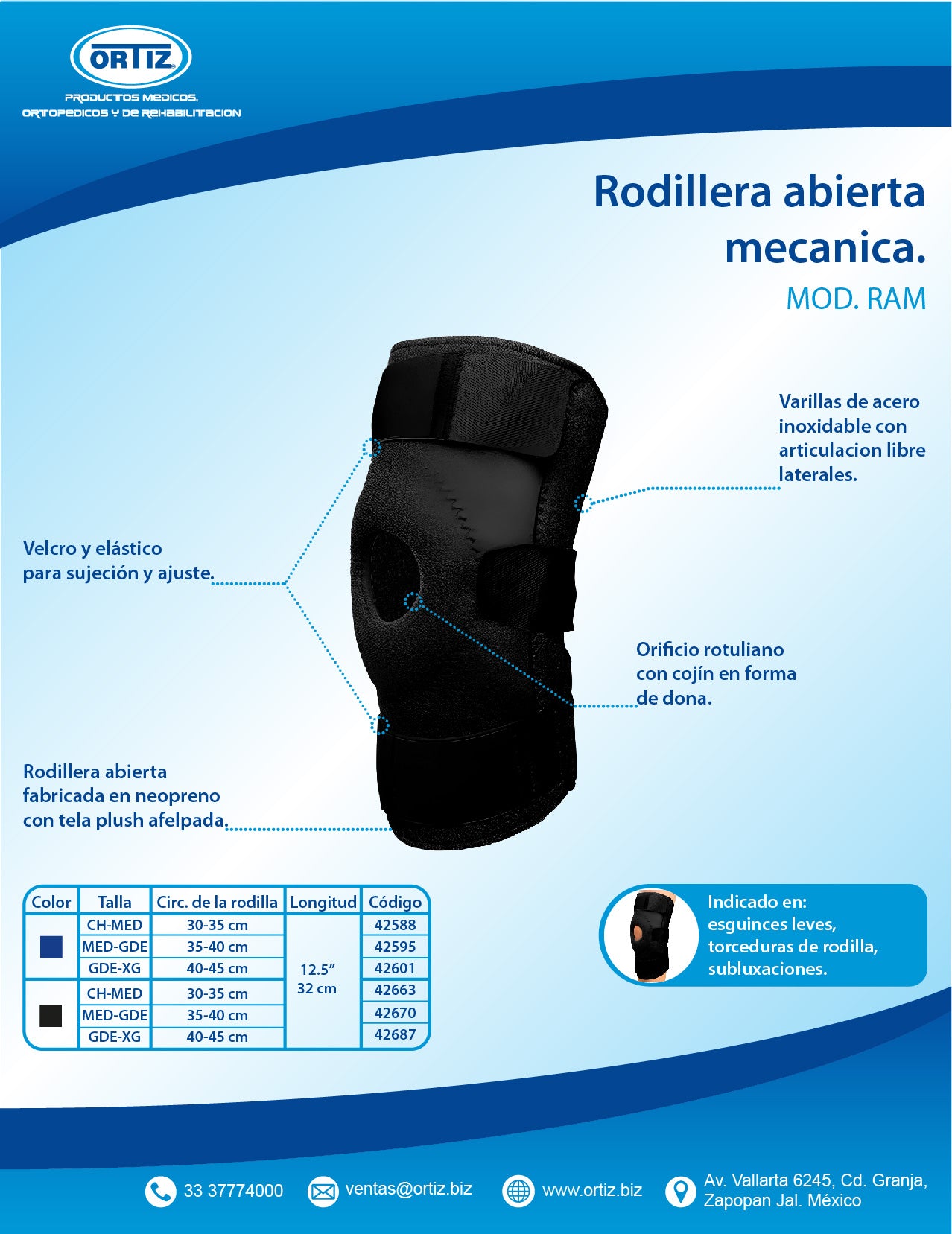 Rodillera mecánica abierta de neopreno cojín rotuliano MOD. RAM