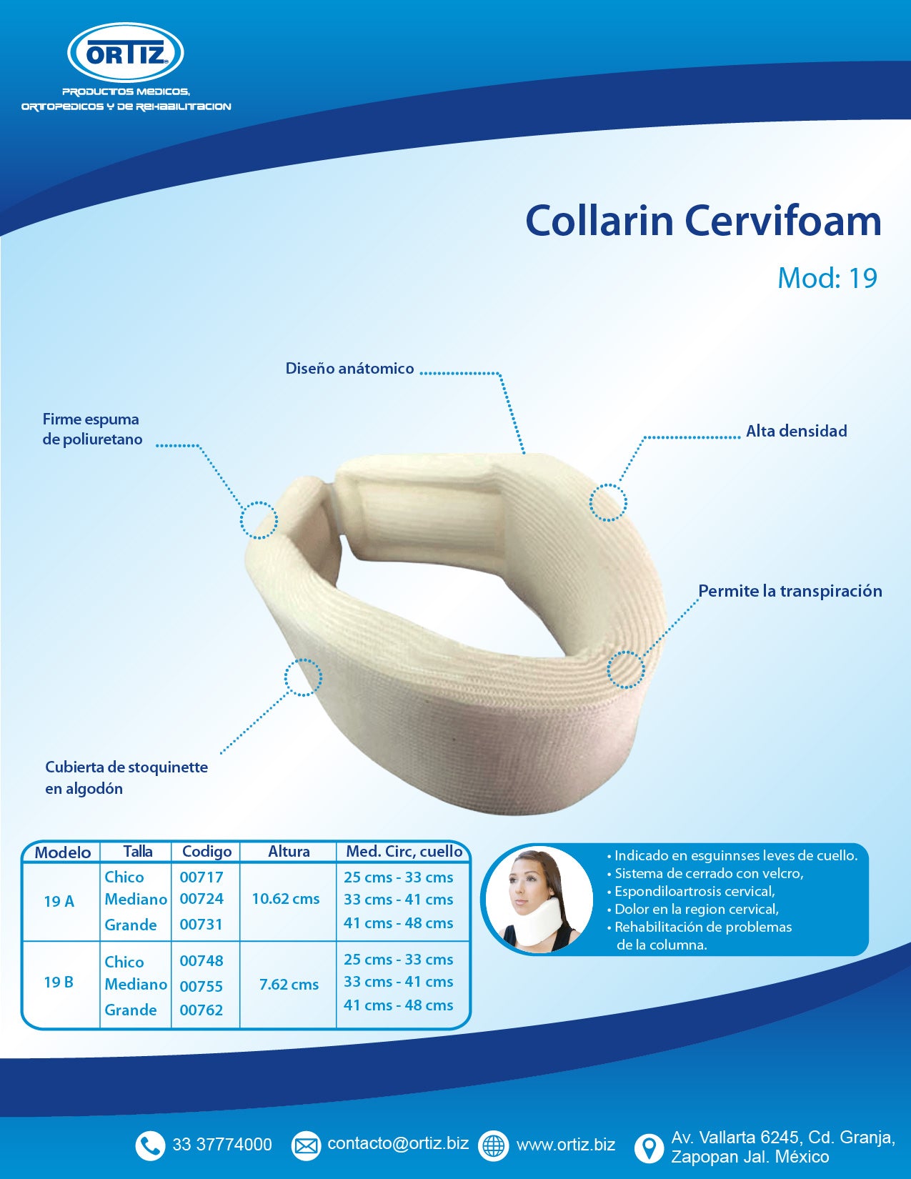 - Collar cervical compuesto de espuma de poliuretano,