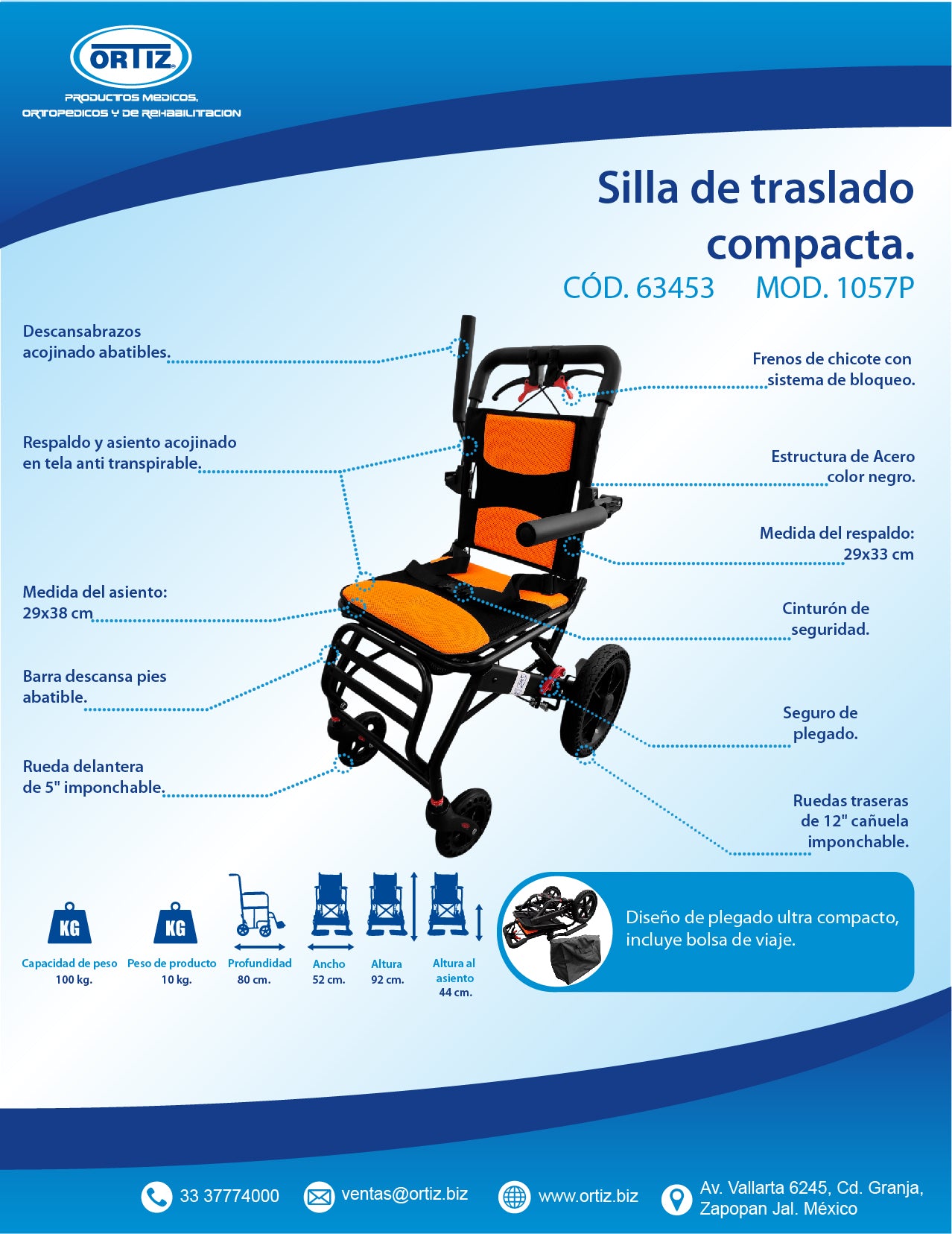 La silla de traslado de viaje ultra compacta Ortiz, modelo 1057P, es la solución ideal para quienes buscan comodidad y practicidad en sus desplazamientos. Con un diseño manual y un peso de solo 10 kg, esta silla es fácil de manejar y transportar. Sus dimensiones compactas, incluyendo un ancho cerrado de 35 cm, permiten guardarla sin complicaciones, siendo perfecta para viajes y salidas. Con un ancho de asiento de 29 cm y una altura total de 92 cm, ofrece la estabilidad necesaria para un uso diario sin comprometer el confort. La estructura está diseñada para soportar hasta 100 kg, asegurando durabilidad y resistencia. Su composición de cuatro ruedas facilita un desplazamiento suave y ágil, brindando seguridad en cada movimiento. Incluye una bolsa de viaje y un cinturón, lo que añade funcionalidad a su diseño. La ausencia de complicaciones eléctricas permite que esta silla sea completamente manual, convirtiéndola en una opción económica y fácil de mantener. Ideal para quienes necesitan una solución accesible, la silla 1057P de Ortiz equilibra eficacia y simplicidad para un transporte sin esfuerzo.