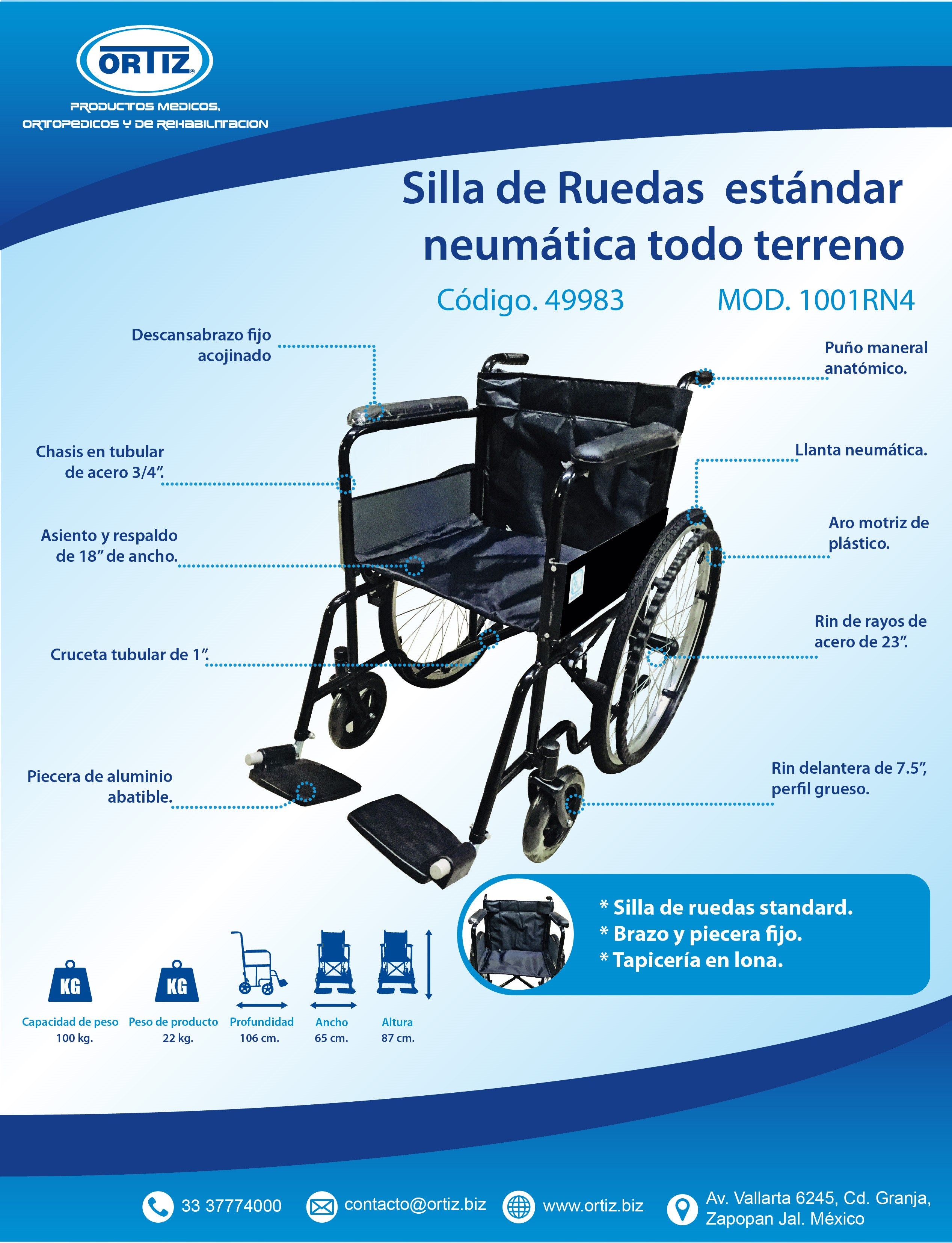 Silla De Ruedas Todo Terreno Ortopedica Neumatica Adulto MOD. 1001RN4