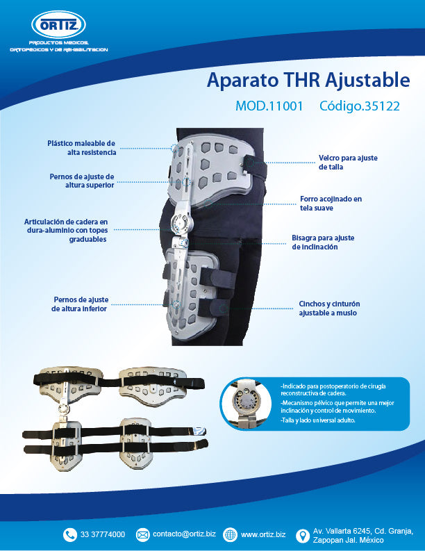 Ortesis graduable universal para adulto post-quirúrgico tras prótesis tota de cadera MOD. THR