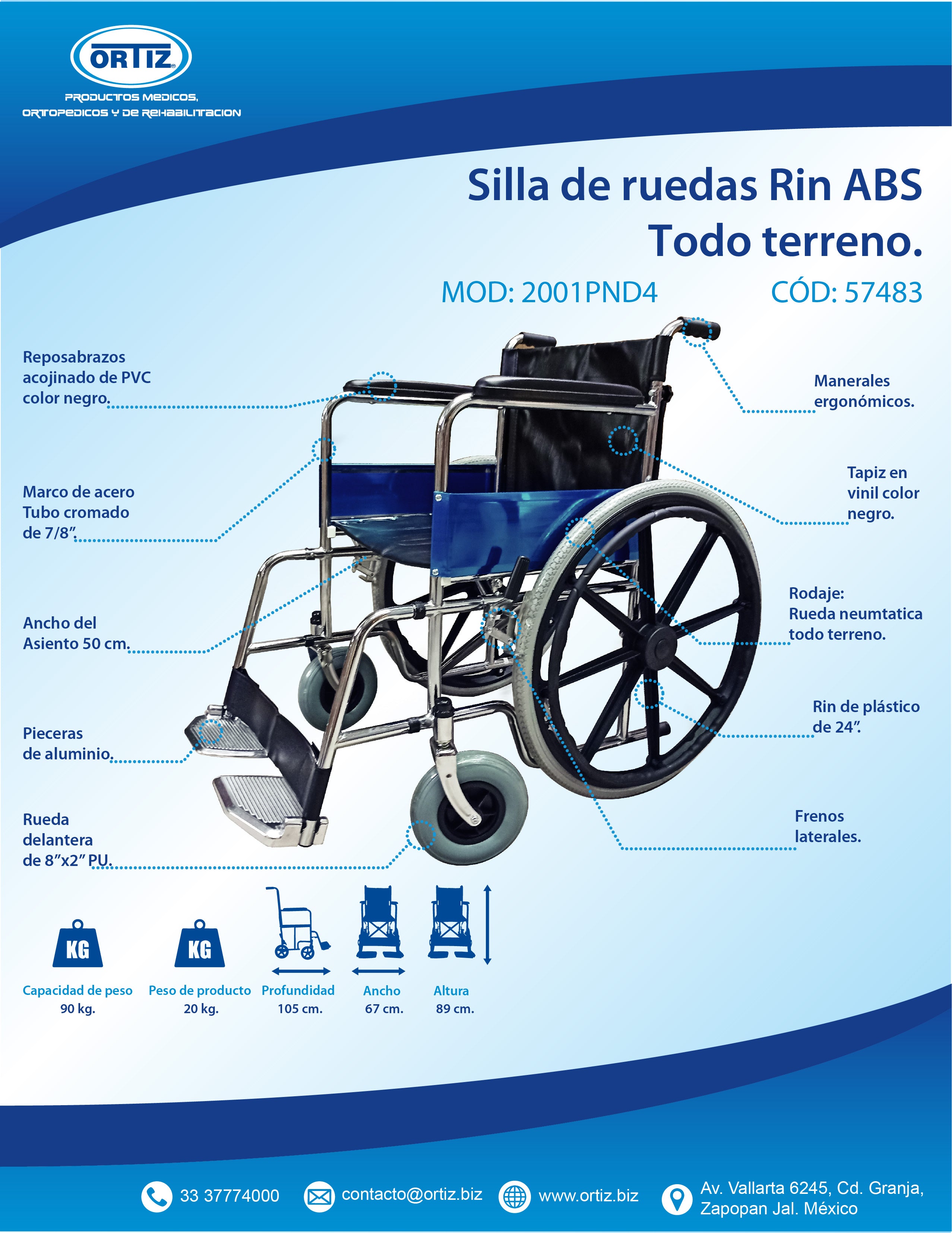 La silla de ruedas cromada todo terreno ortopédica neumática de la marca Ortiz es ideal para aquellos que buscan comodidad y movilidad. Con un peso de 20 kg y una capacidad de soportar hasta 90 kg, esta silla es resistente y duradera. Su diseño plegable la hace fácil de transportar y almacenar en cualquier lugar. El modelo 2001PND4 cuenta con un ancho de asiento de 50 cm y una altura total de 89 cm, proporcionando un ajuste cómodo para el usuario. Con 4 ruedas y un diseño manual, esta silla de ruedas ofrece estabilidad y facilidad de manejo en diferentes tipos de terreno. Perfecta para uso diario o para actividades al aire libre. Ya sea para uso personal o para un ser querido, esta silla de ruedas ofrece la combinación perfecta de funcionalidad y estilo. Con su construcción robusta y su capacidad de plegado, es una excelente opción para aquellos que buscan una silla de ruedas versátil y de alta calidad. Aprovecha esta oportunidad para mejorar la movilidad y la calidad de vida.