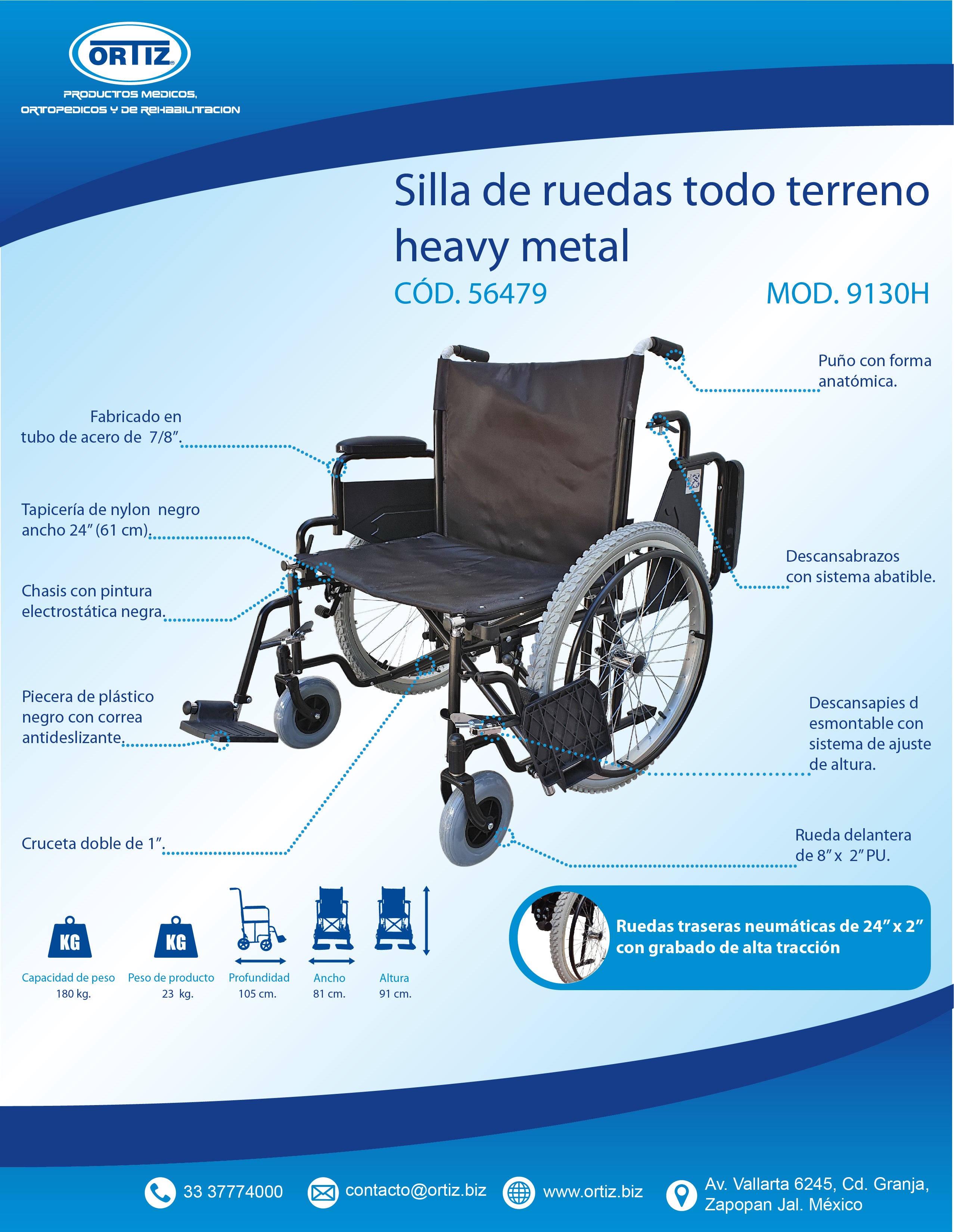 La Silla de Ruedas Sobrepeso Bariátrica 180kg es ideal para personas que requieren un soporte resistente y seguro. Con un ancho de asiento de 61 cm brinda comodidad y estabilidad para personas amplias. Doble cruceta de soporte inferior reforzada asegura una capacidad de carga de hasta 180 kg para necesidades especiales de carga. Sus accesorios incluidos como los brazos plegables y las ruedas neumáticas gruesas garantizan una experiencia de uso óptima. El diseño plegable de esta silla de ruedas facilita su transporte y almacenamiento, siendo una opción práctica para el día a día. Con un respaldo y asiento de 61 cm de ancho y una altura total de la silla de 91 cm, ofrece un soporte ergonómico y confortable. Su estructura robusta y duradera, de la reconocida marca Ortiz, asegura una excelente calidad y resistencia. Con un modelo manual y cuatro ruedas, esta silla de ruedas es versátil y funcional para diferentes necesidades de movilidad. ¡No pierdas la oportunidad de adquirir este producto de alta calidad que brindará confort y seguridad a quienes lo necesitan!