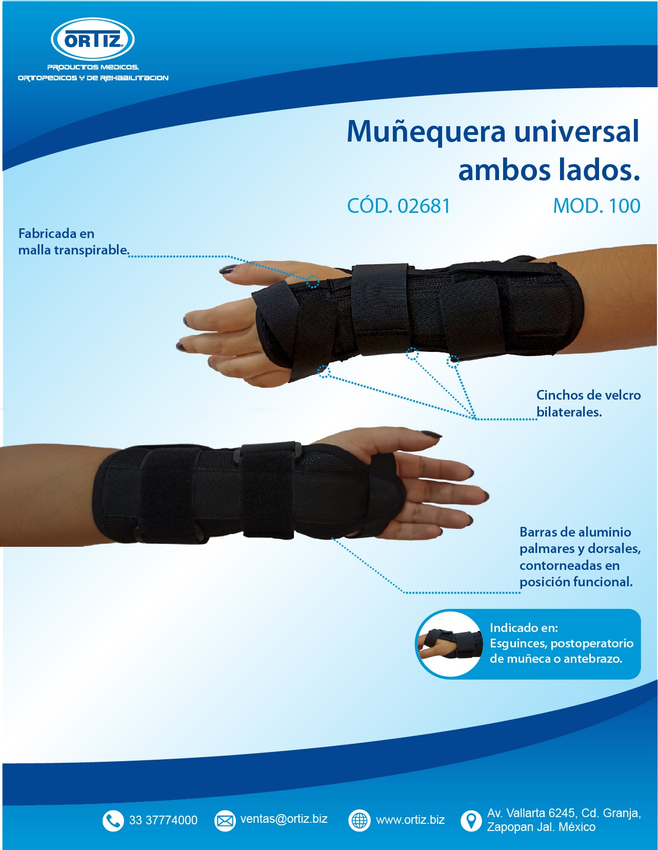 Indicado en: Proporcionar soporte adicional a muñecas débiles. Esguinces. Postoperatorio de muñeca o antebrazo.