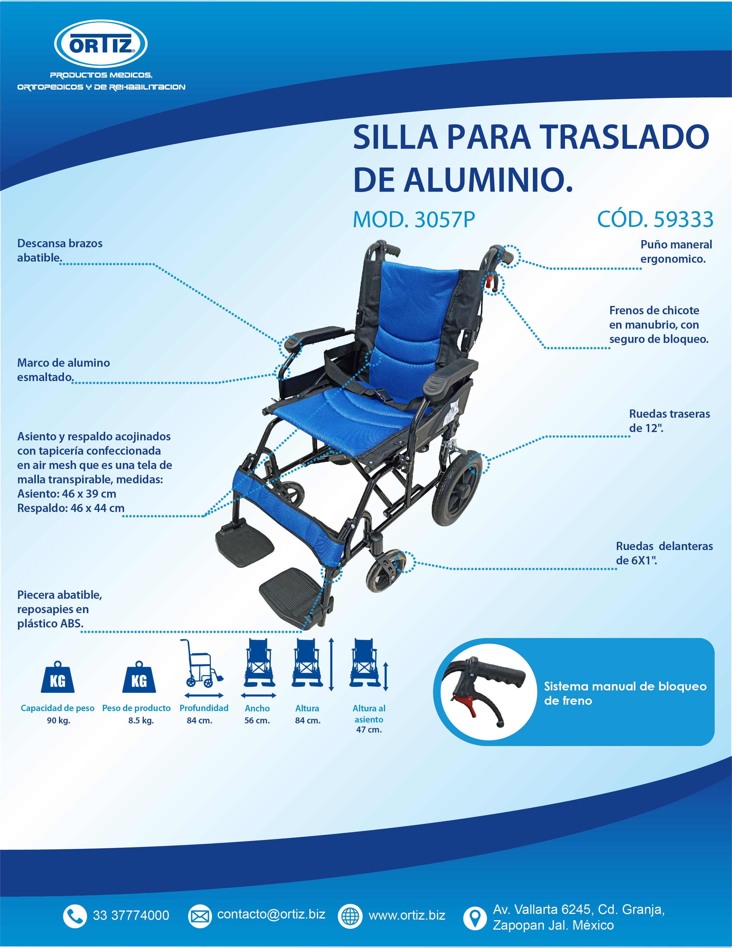 La Silla De Ruedas Aluminio De Traslado Compacta Ortiz es la opción perfecta para quienes buscan comodidad y seguridad en su movilidad diaria. Con un ancho de respaldo de 46 cm y una altura de respaldo de 44 cm, garantiza un ajuste ergonómico para una experiencia cómoda. Además, su diseño deportivo y compacto la hacen ideal para uso en interiores y exteriores. Esta silla de ruedas manual cuenta con frenos y cinturón de seguridad incluidos, brindando una mayor tranquilidad al usuario y a sus cuidadores. Con un peso de tan solo 10 kg y la posibilidad de plegarse, es fácil de transportar y almacenar en espacios reducidos. Su resistencia permite soportar hasta 90 kg de peso máximo, asegurando durabilidad y confiabilidad en cada uso. El modelo 3057P de Ortiz destaca por su calidad y funcionalidad, siendo una excelente opción para personas que buscan una silla de ruedas versátil y práctica. Con un ancho de asiento de 46 cm y una altura total de 84 cm, ofrece un equilibrio perfecto entre confort y movilidad. No esperes más y adquiere la Silla De Ruedas Aluminio De Traslado Compacta Ortiz para mejorar tu calidad de vida.