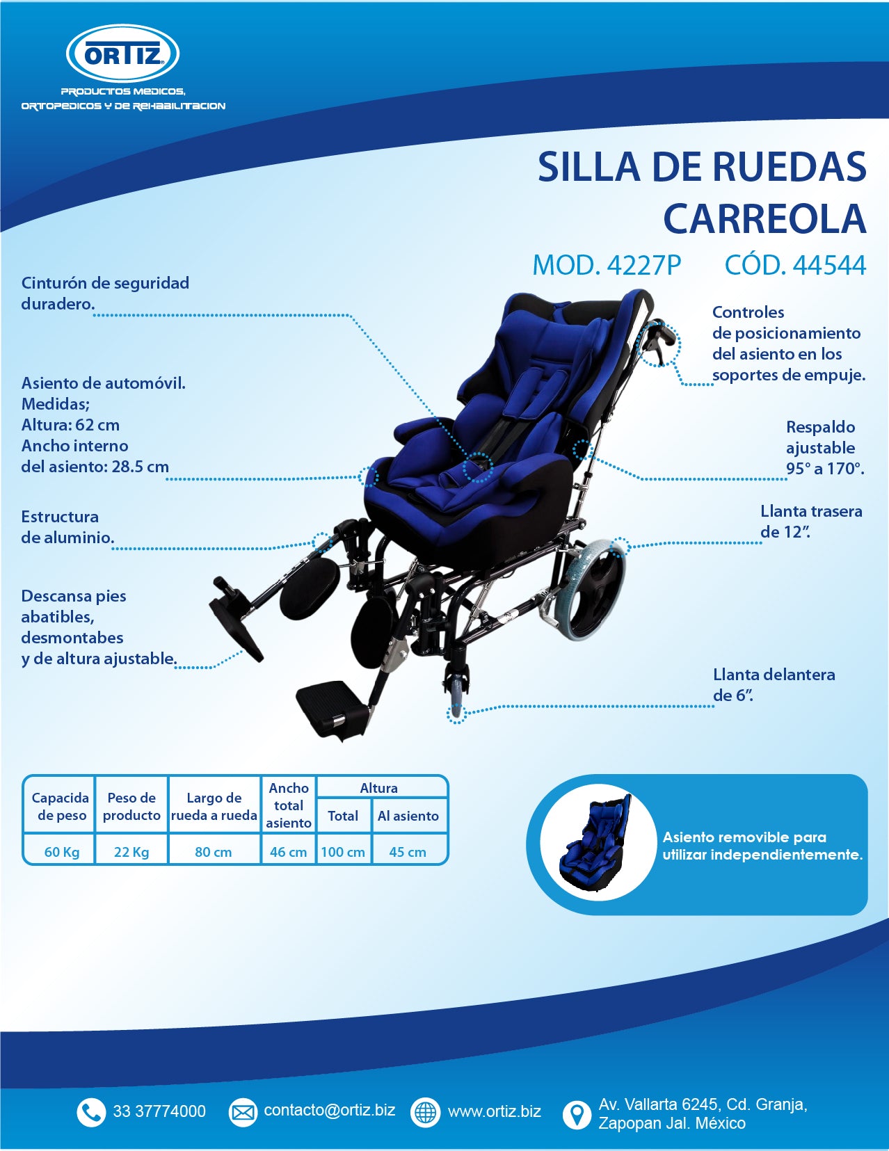 Silla de ruedas tipo carriola con asiento removible y cinchos para PCI MOD. 4227P