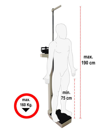 - Estadiómetro fabricado en aluminio formado por dos secciones, estampado en centímetros con divisiones de 1/2 cm, hasta una estatura de 195 cm