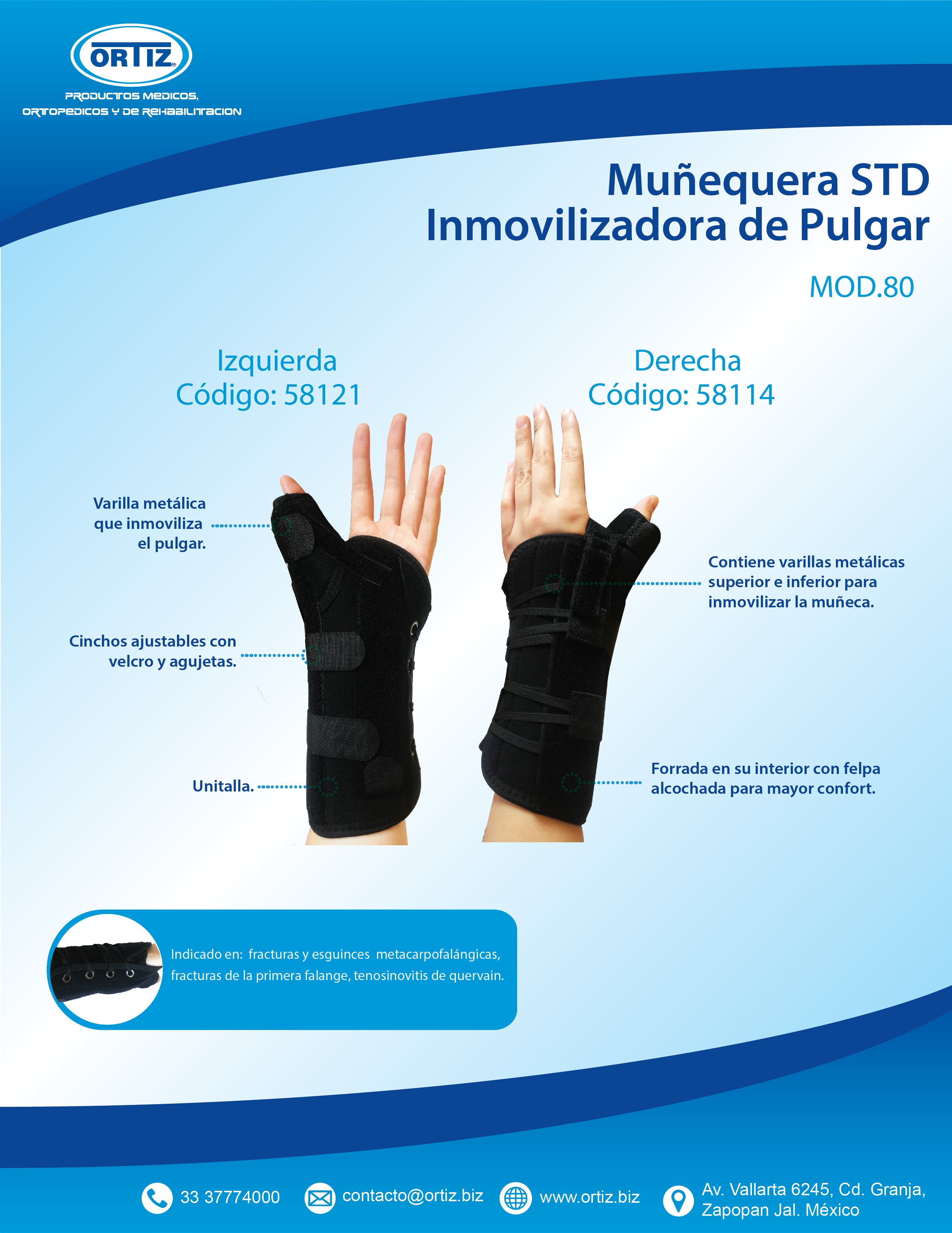Indicado en: fracturas y esguinces metacarpofalángicas, fracturas de la primera falange, tendinitis de quervain.