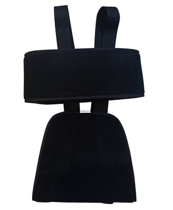 - Tiene doble cintas que se cruzan sobre hombros y espalda con cierre de velcro para ajuste, - Fabricada en velour, material acojinado y perforado para circulacion del aire,