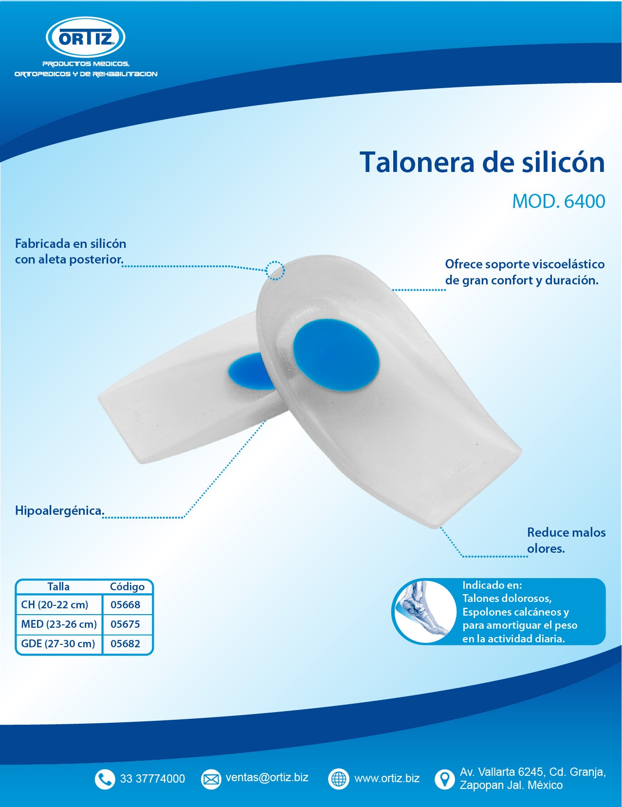 La Talonera de silicón Ortiz modelo 6400 es la solución ideal para quienes sufren de talones dolorosos y espolones calcáneos. Diseñada para brindar un soporte ortopédico efectivo, esta talonera se adapta cómodamente a la forma del pie, proporcionando una amortiguación superior que alivia la presión en las áreas afectadas. Fabricada en silicona de alta calidad, la talonera es autoadhesiva y ajustable, lo que garantiza un ajuste seguro en cualquier tipo de calzado. Su diseño lavable permite mantener la higiene y durabilidad del producto, asegurando que puedas disfrutar de su comodidad durante mucho tiempo. La Talonera Ortiz no solo es funcional, sino que también es respirable, lo que contribuye a una experiencia de uso más fresca y cómoda. Ideal para personas que pasan largas horas de pie o que realizan actividades que requieren un soporte adicional en los talones, esta talonera es un complemento esencial para tu bienestar diario.