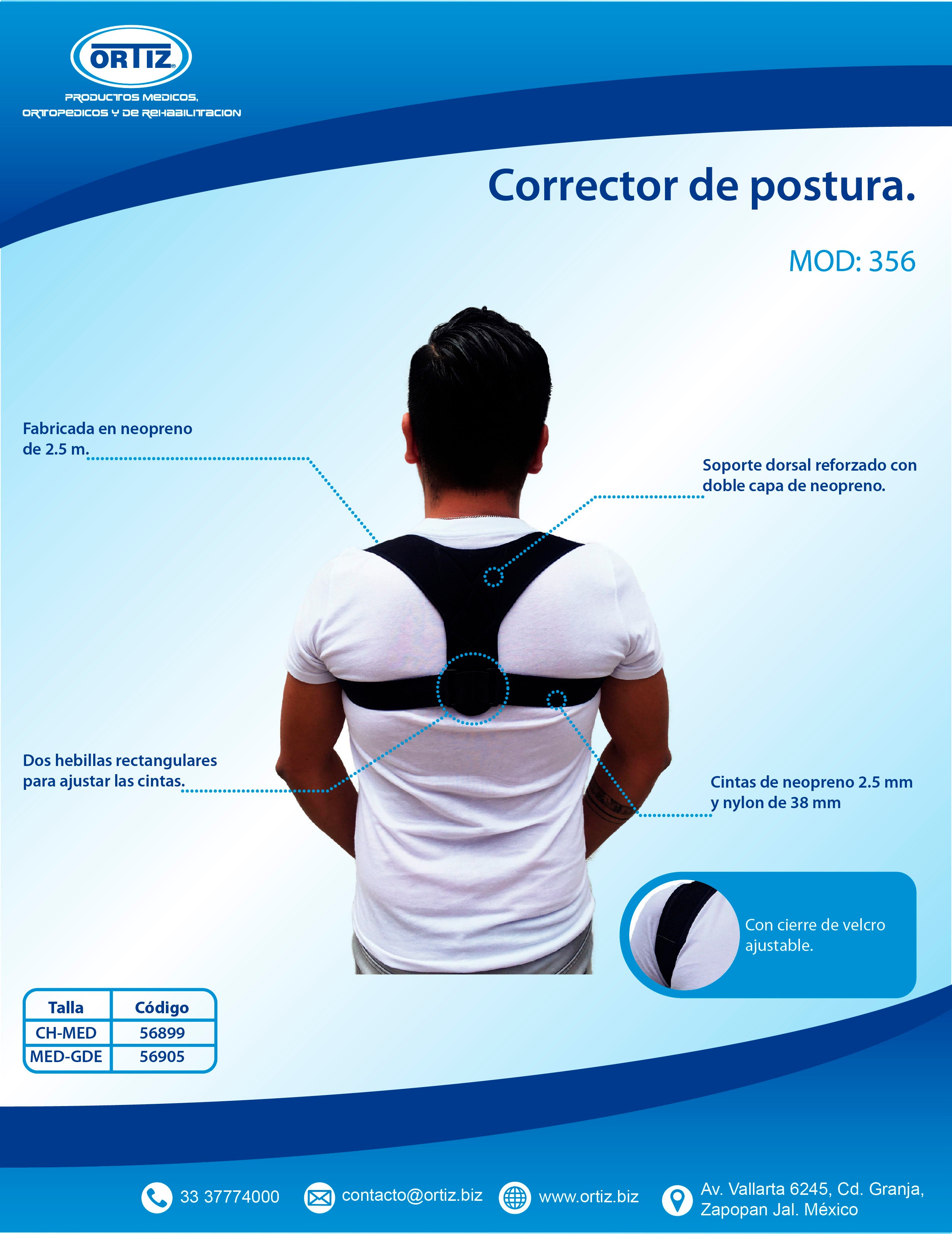 El corrector de postura para adulto Ortiz, modelo 356, es una solución efectiva diseñada para mejorar la postura y el bienestar físico. Su estructura ergonómica se adapta cómodamente al cuerpo, proporcionando soporte en la zona lumbar y promoviéndo una alineación adecuada de la columna vertebral. Ideal para quienes pasan prolongadas horas sentados, este corrector ayuda a prevenir dolores musculares y a fomentar una mejor postura de manera discreta. Fabricado con materiales transpirables y suaves al tacto, el corrector de postura Ortiz garantiza una experiencia de uso agradable en cualquier momento del día. Su diseño ligero permite una fácil movilidad, sin restringir tus actividades diarias. Además, se ajusta a diferentes tipos de cuerpos, lo que lo hace accesible para una amplia variedad de usuarios. Utilizar este corrector de postura puede ser parte de un estilo de vida saludable, ayudando a fortalecer los músculos posturales. A través de un uso regular, sentirás una mejora notable en tu confort y bienestar general. Este accesorio es una inversión en tu salud, favoreciendo mejores hábitos posturales a largo plazo.