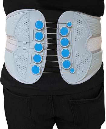 Faja Lumbar para dolor de espalda. Siente como te sujeta la espalda baja y hace tracción al jalar las bandas que activan su mecanismo de poleas que sujeta firmemente tu espalda dando una sensación de alivio al ayudar con la carga del peso a tu espalda.