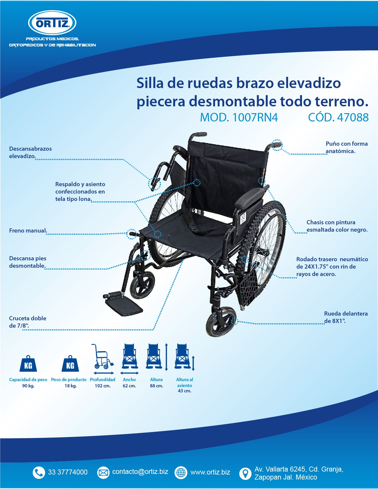 Silla de ruedas todo terreno con brazo elevadizo y piecera desmontable. MOD. 1007RN4