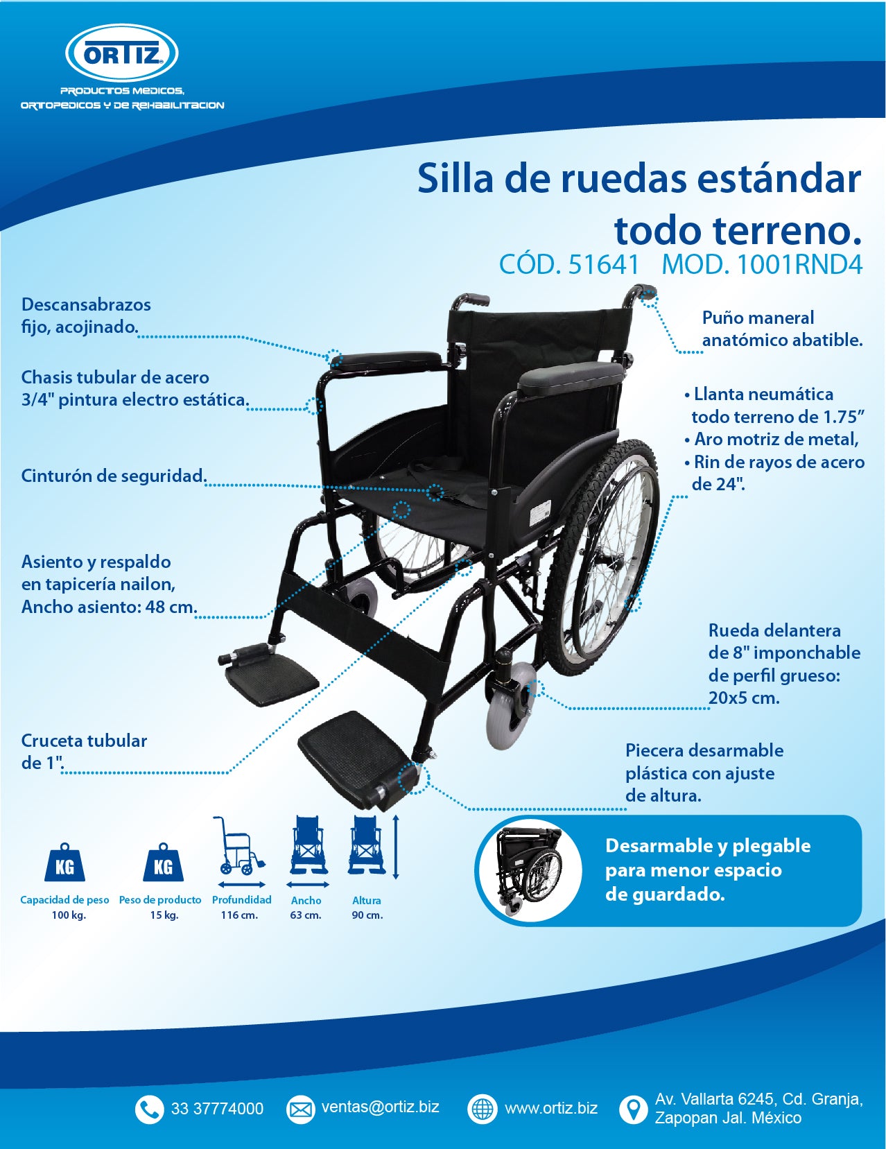 La silla de ruedas estándar todo terreno de la marca Ortiz es una excelente opción para aquellos que buscan comodidad y versatilidad en su movilidad diaria. Con un peso de 15 kg y una capacidad de carga de hasta 100 kg, esta silla es ligera pero resistente, ideal para uso cotidiano. Además, su diseño plegable facilita su transporte y almacenamiento en espacios reducidos. El ancho del respaldo de 48 cm y el ancho del asiento de la misma medida garantizan un ajuste cómodo para el usuario. Su altura total de 90 cm proporciona una postura ergonómica y confortable durante su uso. Con un modelo manual y no pediátrico, esta silla de ruedas es perfecta para adultos que buscan movilidad independiente en diferentes tipos de terreno. Aunque no cuenta con accesorios incluidos no es reclinable, su estructura resistente y duradera la convierten en una opción confiable para el día a día. Con un diseño deportivo y una construcción sólida, la silla de ruedas estándar todo terreno de Ortiz es la elección perfecta para quienes buscan calidad y funcionalidad en un solo producto.